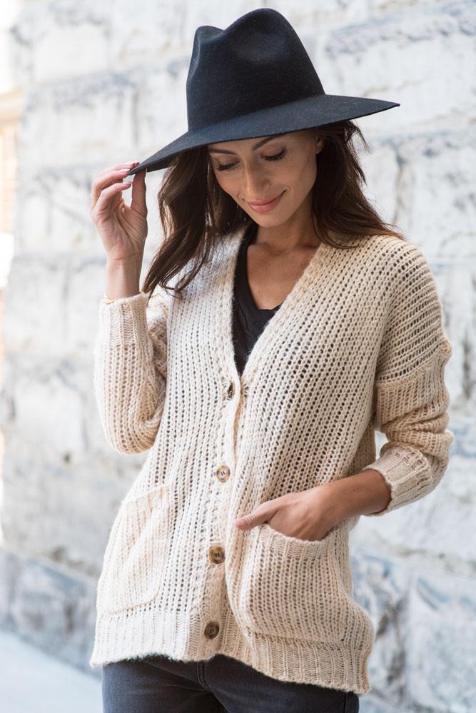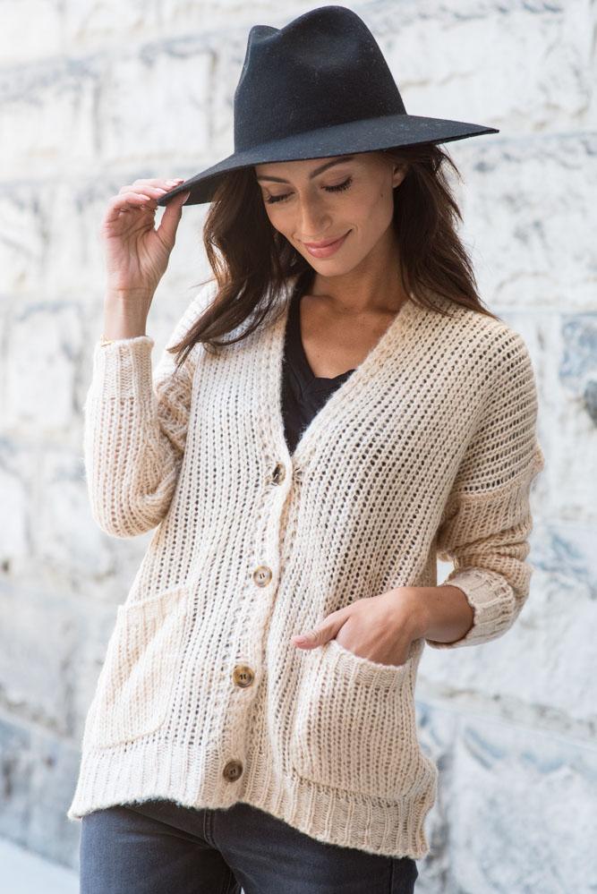 Amber Button Front Cardigan in Tan - FINAL SALE