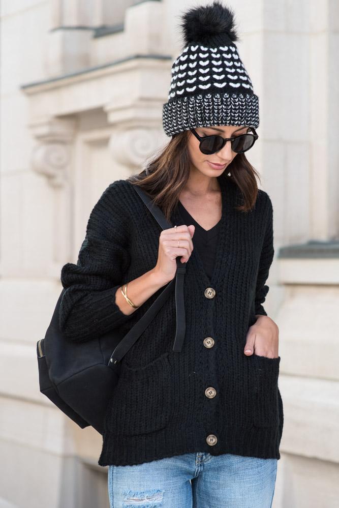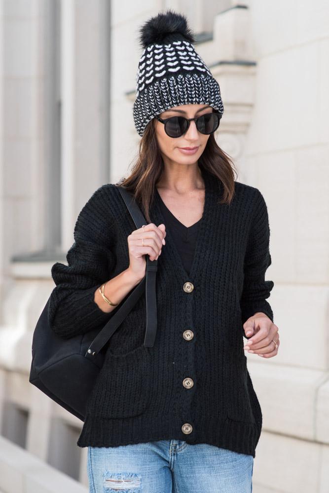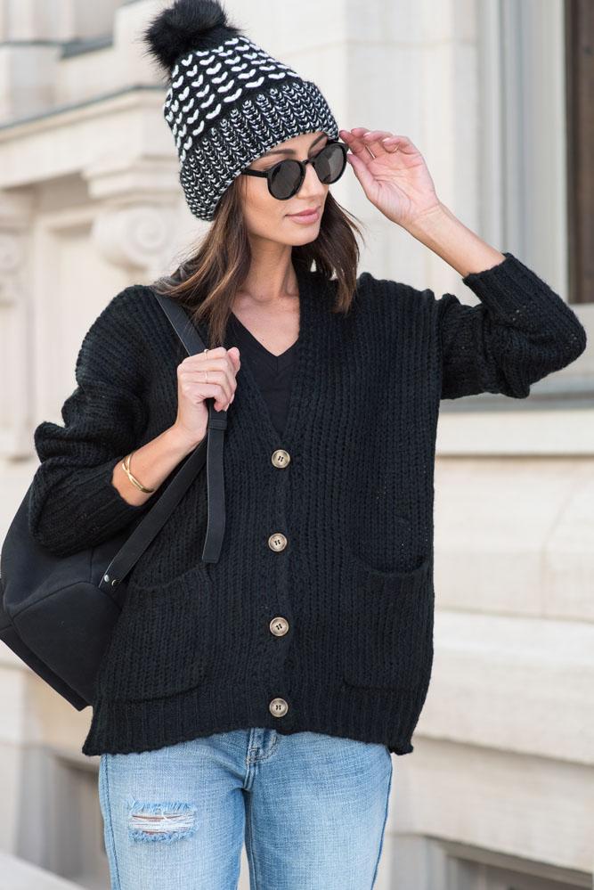 Amber Button Front Cardigan in Black - FINAL SALE
