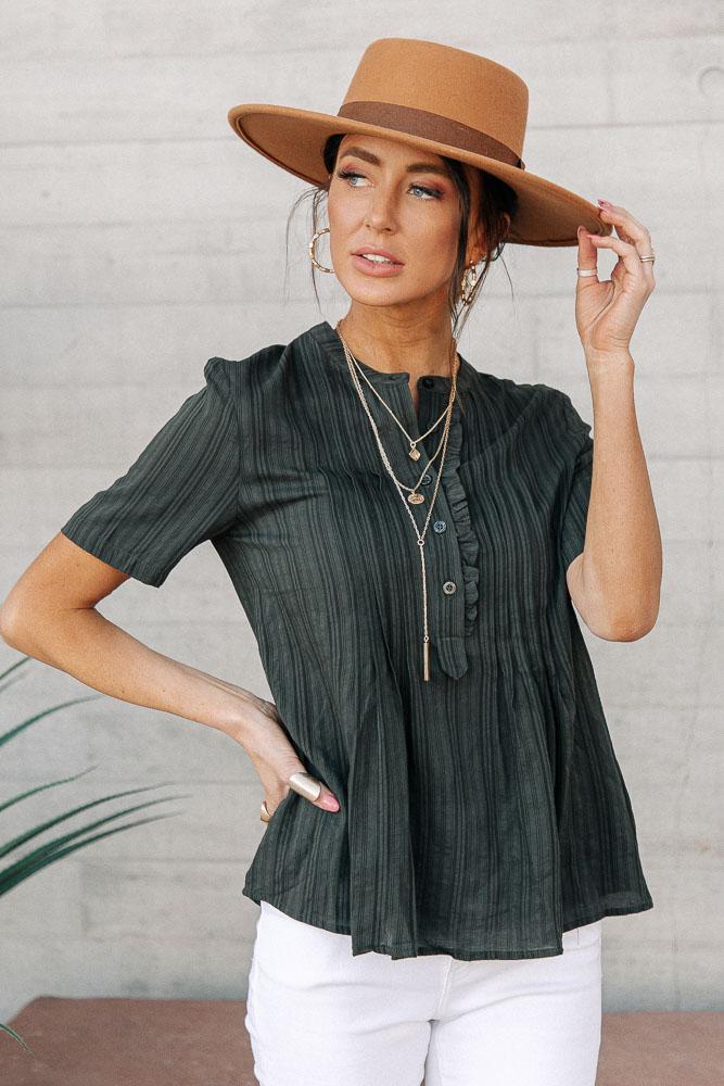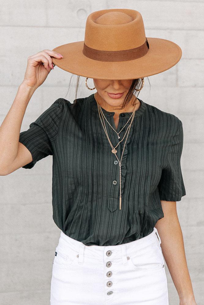 **Our online merchandise team measures each size by hand. For more specific information on the product, please feel free to live chat with a stylist.