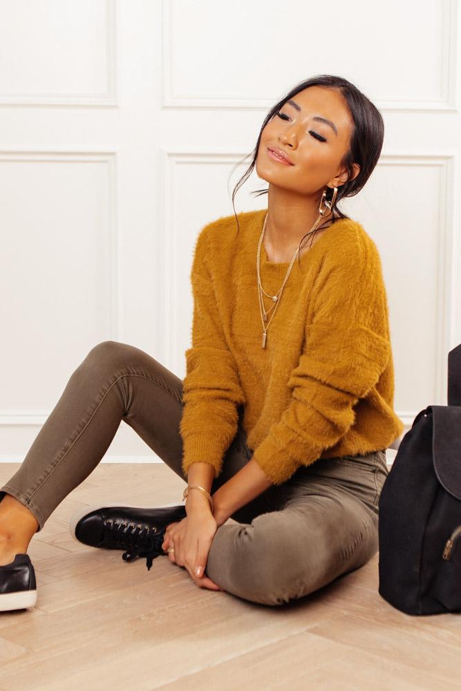 **Our online merchandise team measures each size by hand. For more specific information on the product, please feel free to live chat with a stylist.