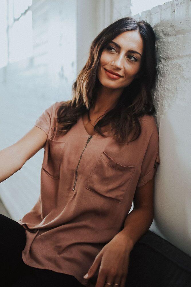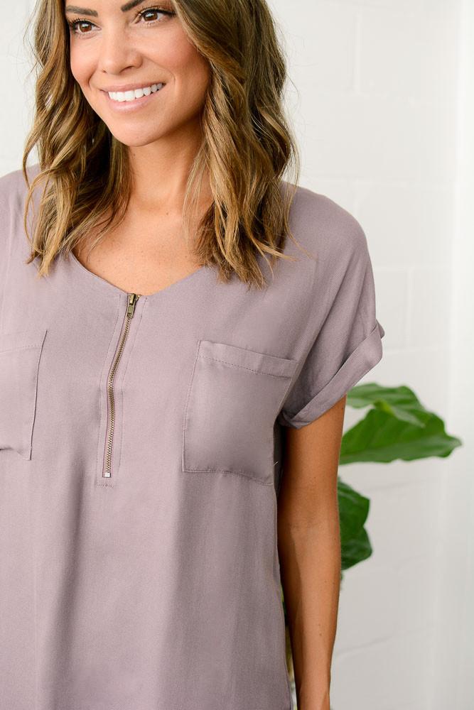 Cruise around town in this top that features double breast pockets, front zipper, cuffed sleeves and high low styling. Tuck it in, wear it under a cardigan, or flaunt it with a pair of skinny jeans. This is the perfect top to hit the town in!