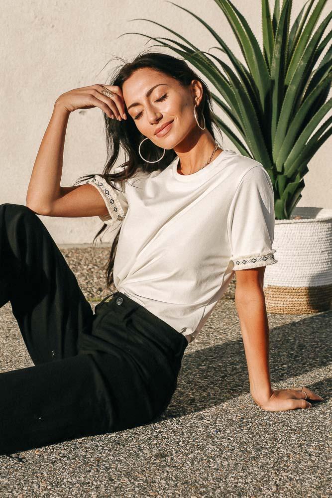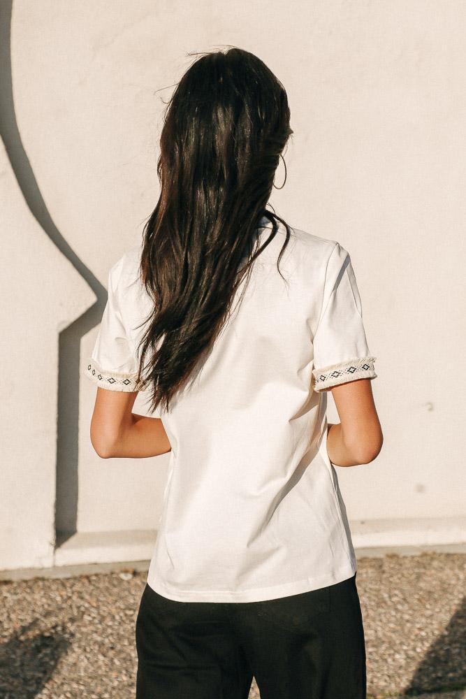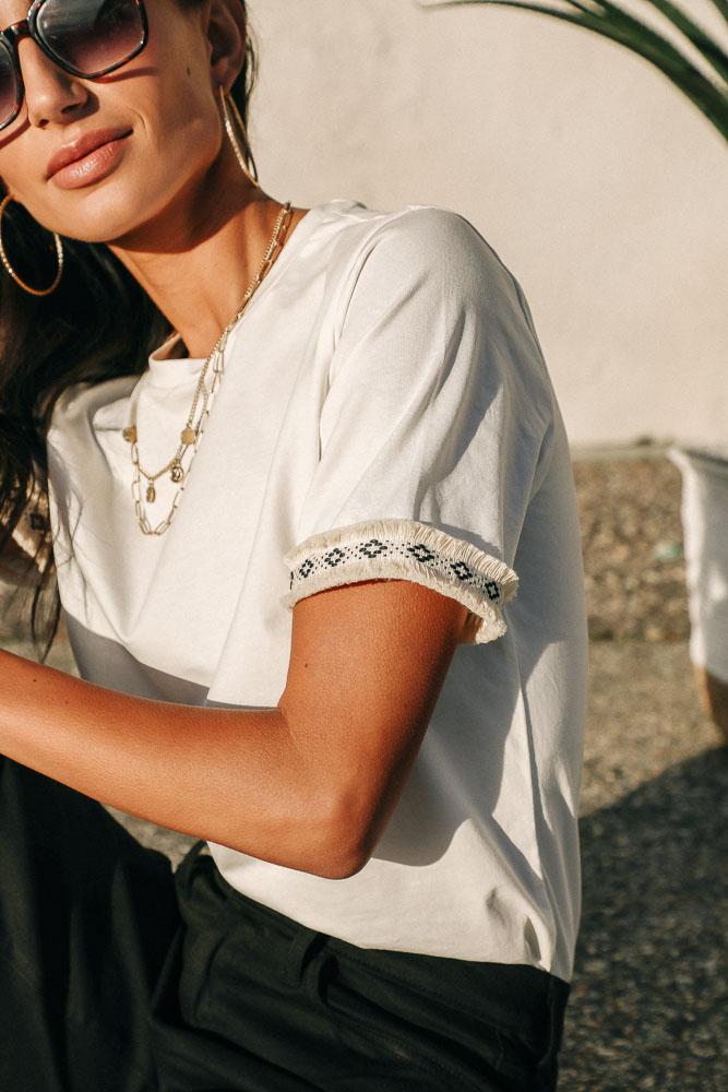 - Sleeve Detail, Embroidered Ribbon with Fringe