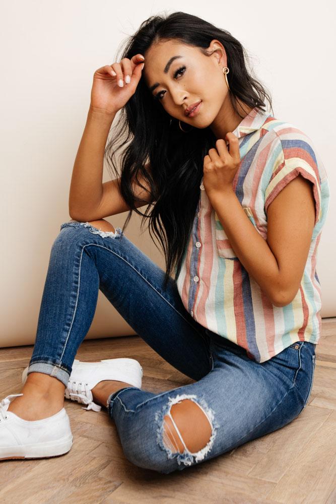 **Our online merchandise team measures each size by hand. For more specific information on the product, please feel free to live chat with a stylist.