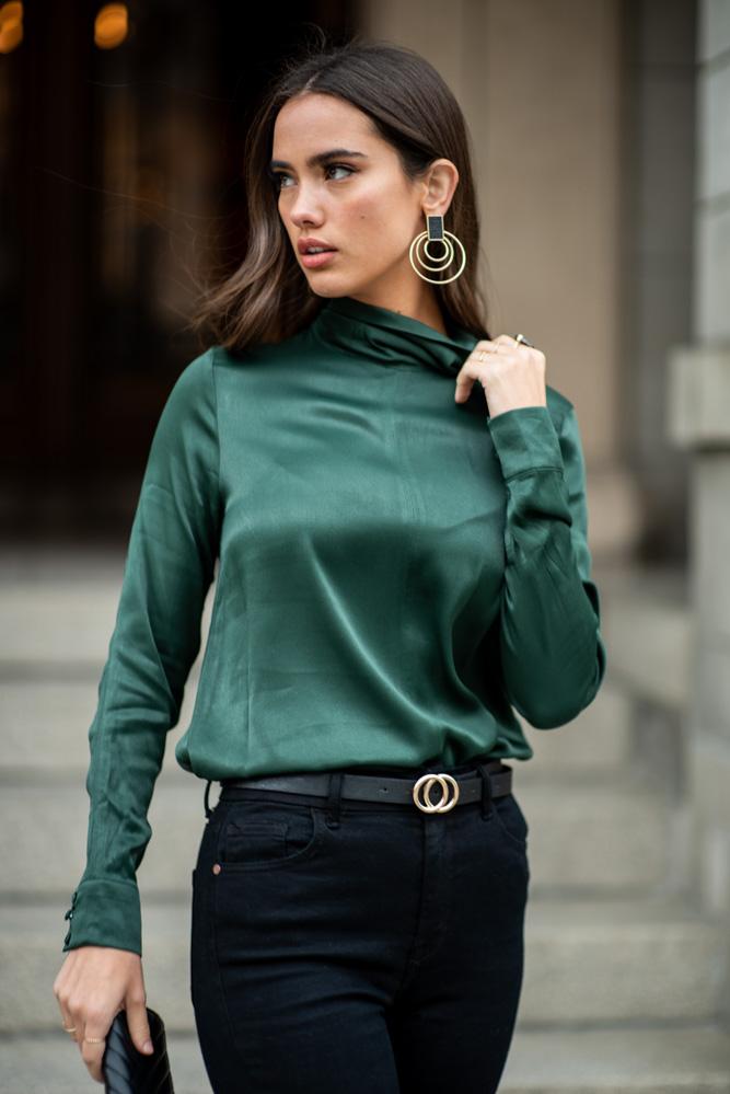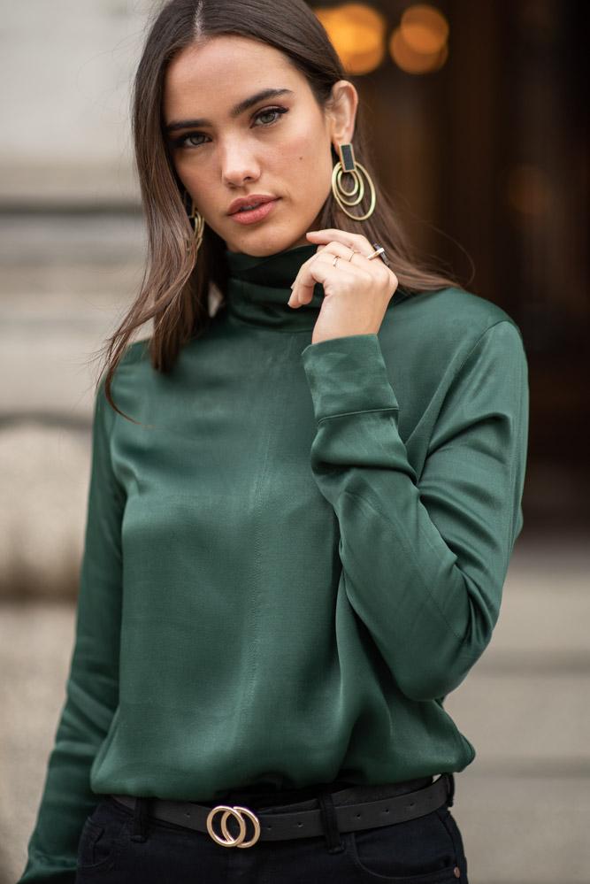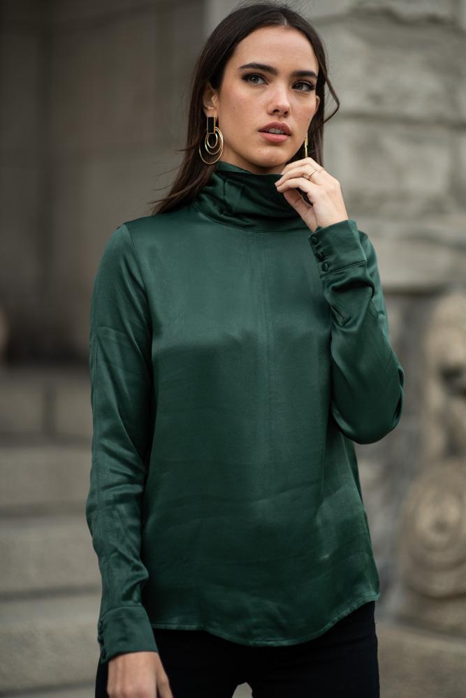 Dahlia High Neck Blouse in Emerald - FINAL SALE