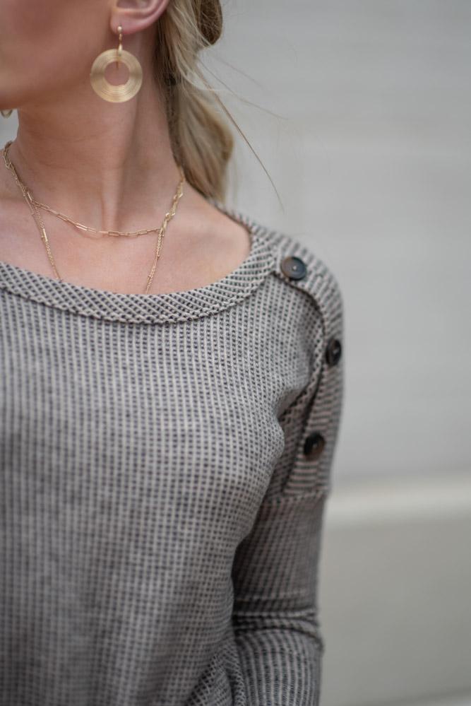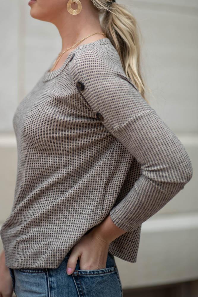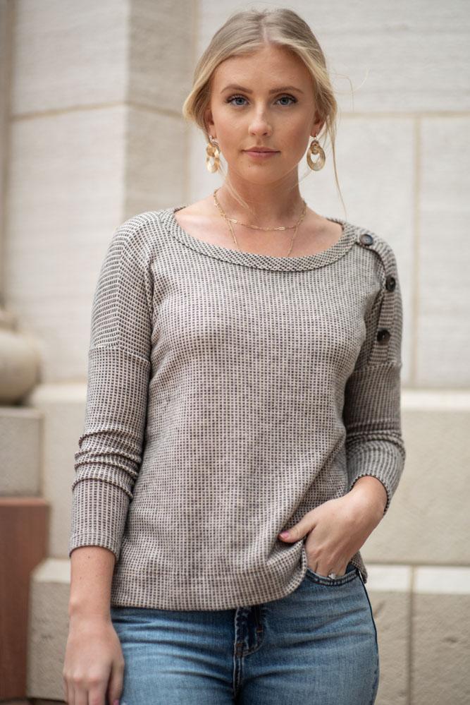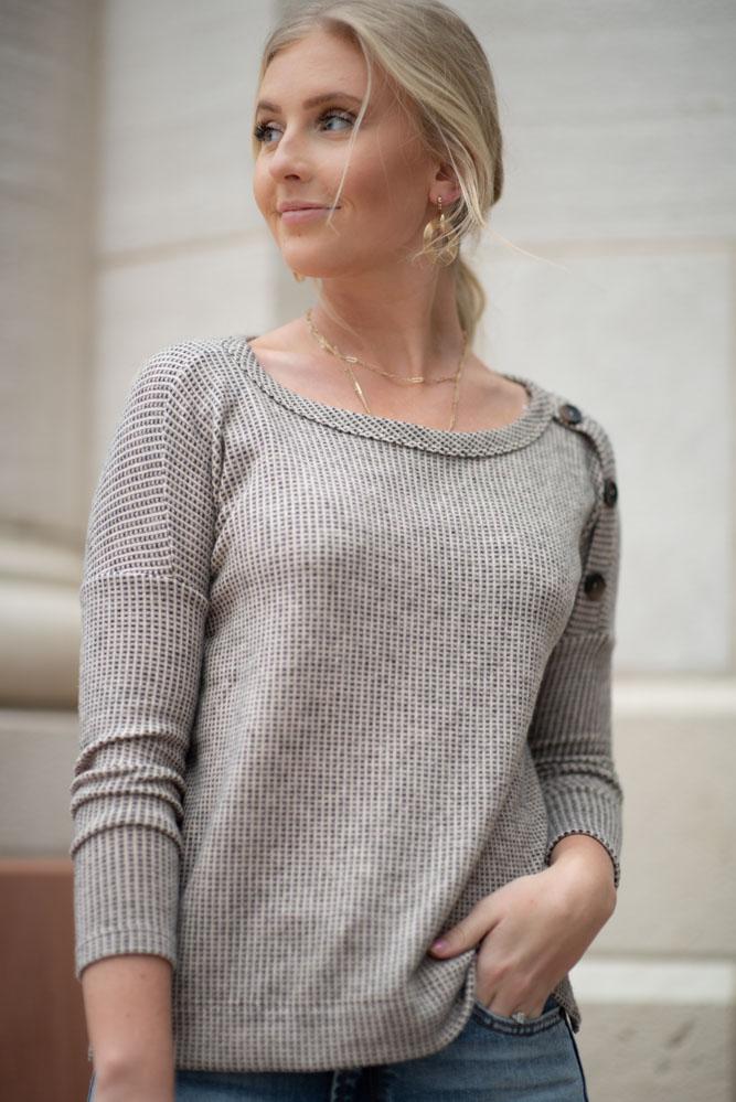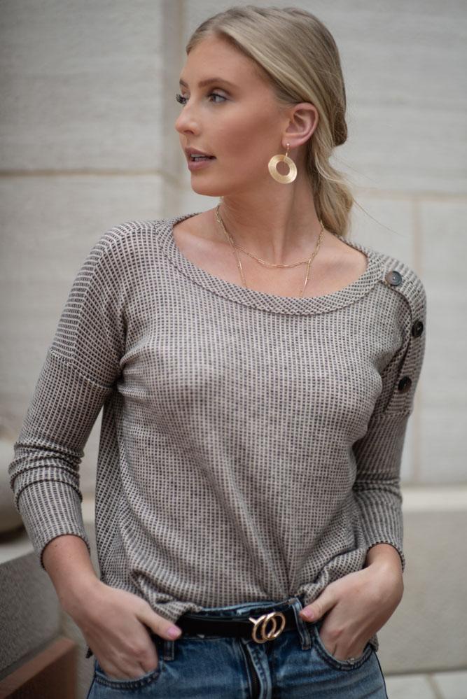 Ellen Button Shoulder Top in Taupe