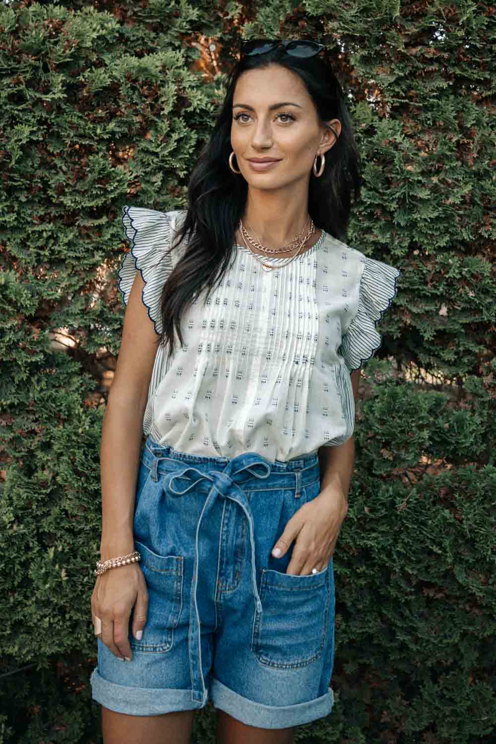 **Our online merchandise team measures each size by hand. For more specific information on the product, please feel free to live chat with a stylist.