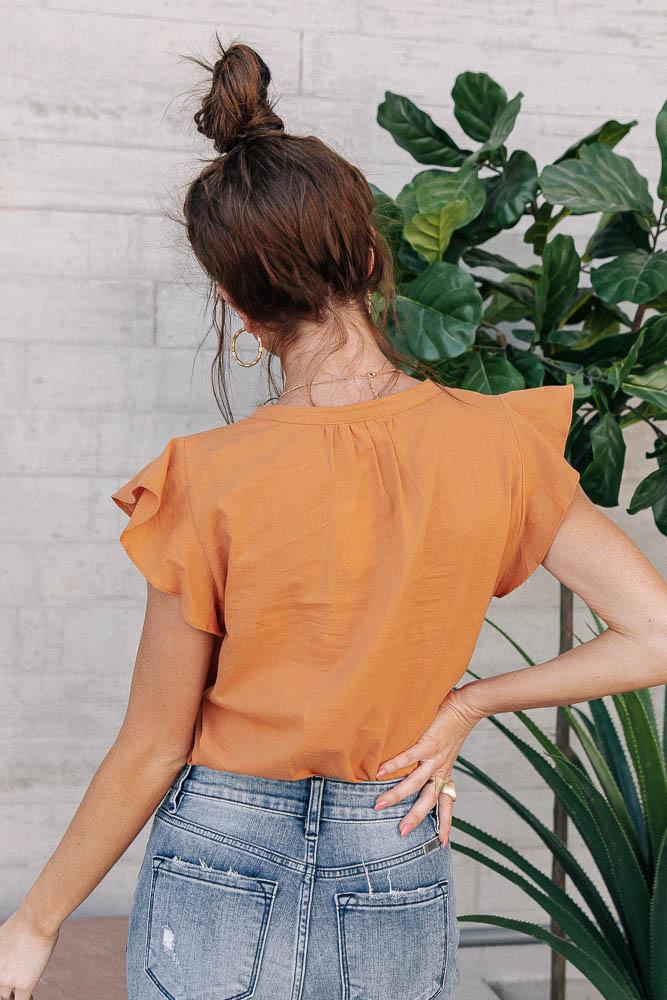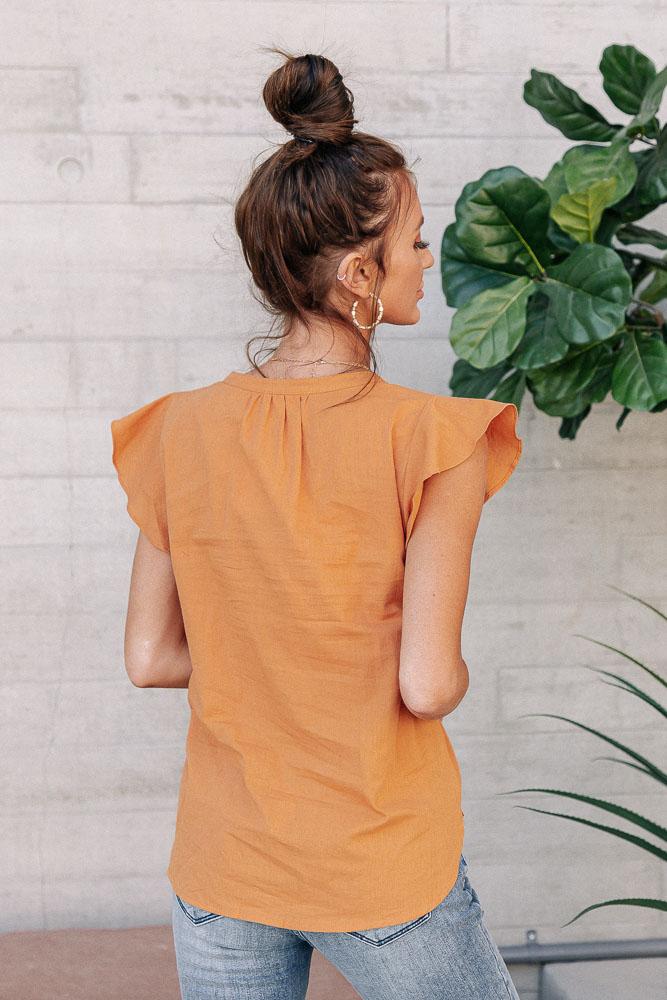 • Load image into Gallery viewer, Embroidered Flutter Sleeve Top in Citrus