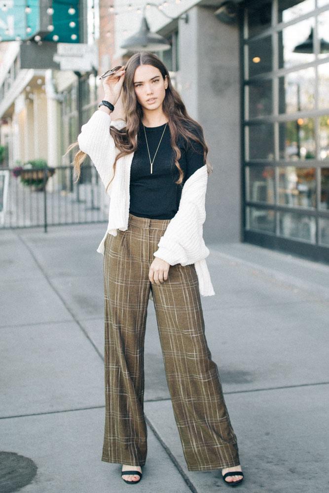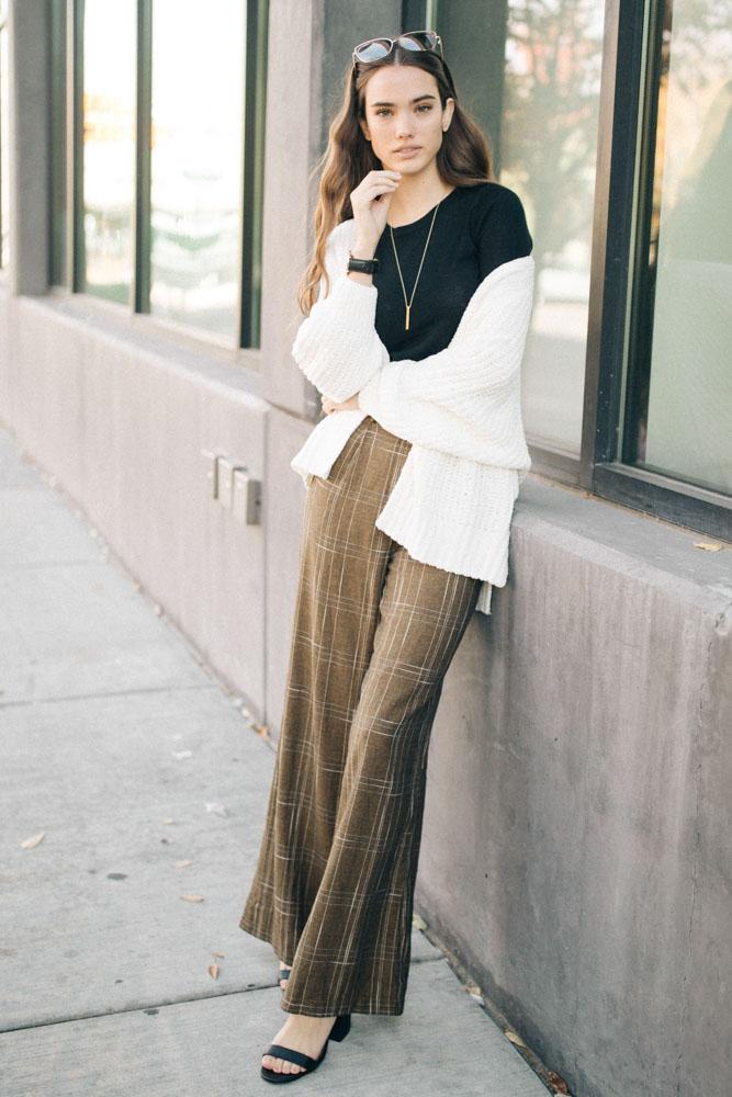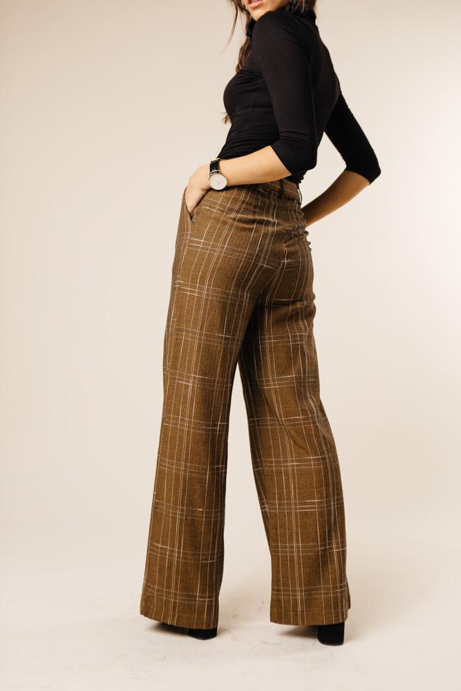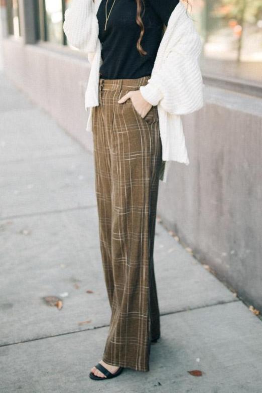 The Evie Plaid Trousers have a trendy pinstripe print, waist band with belt loops, and diagonal pockets. The wide leg fit makes it perfect to wear with boots and slip on's. We think you will love them for a day in the office or a night in town.