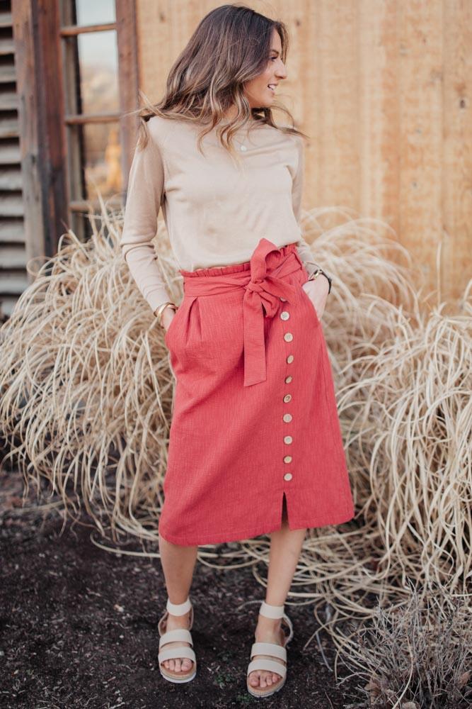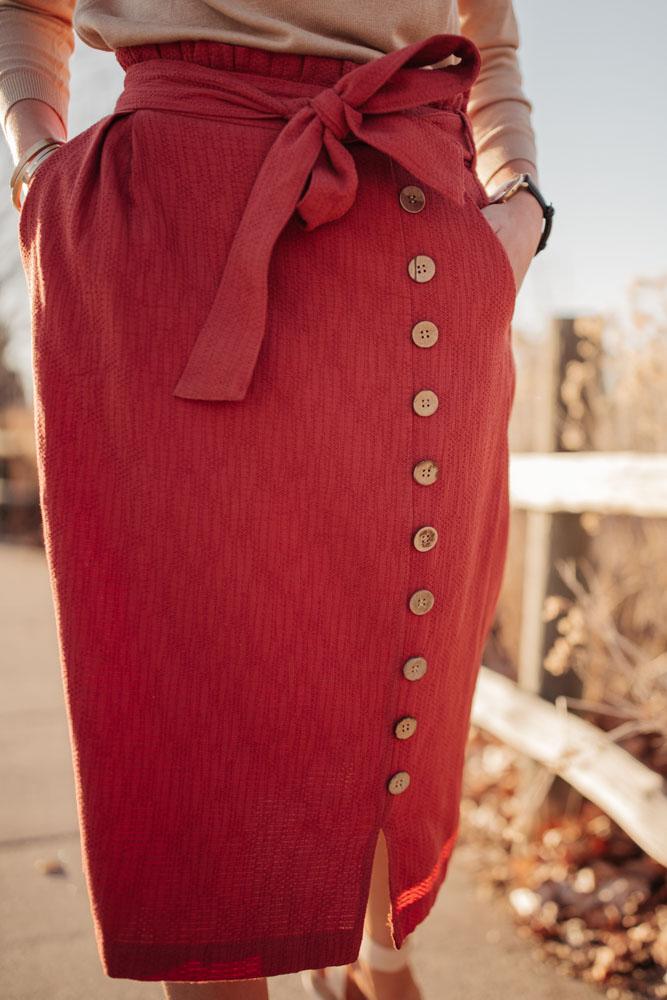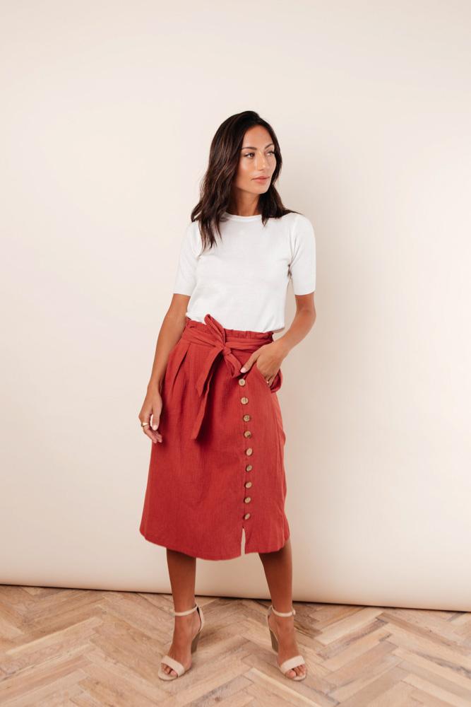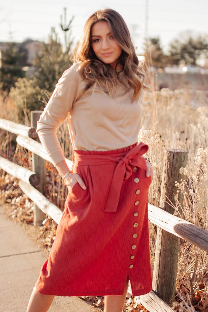 • Load image into Gallery viewer, Ginger Midi Skirt in Rust