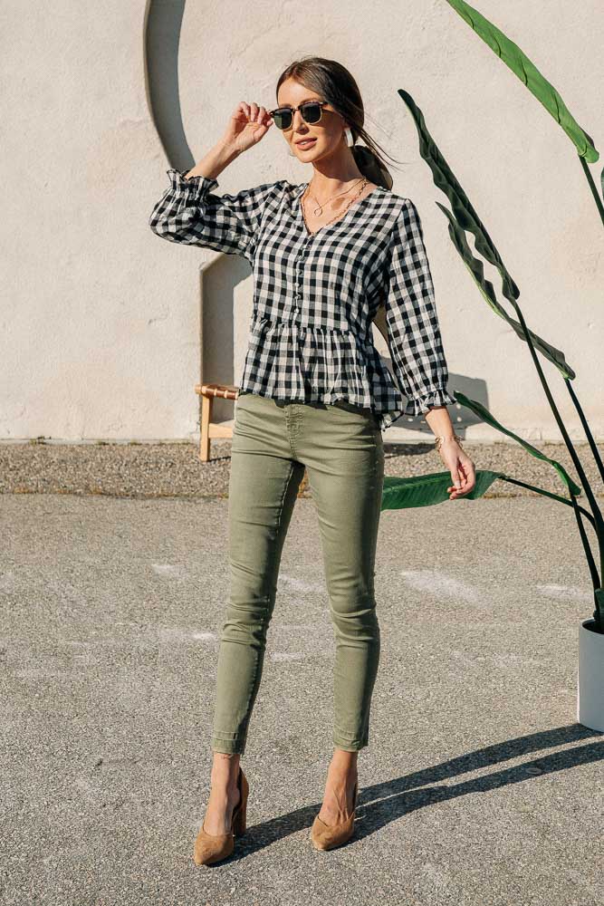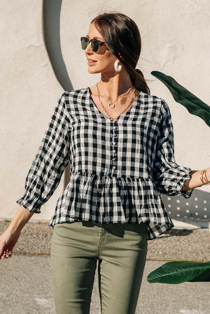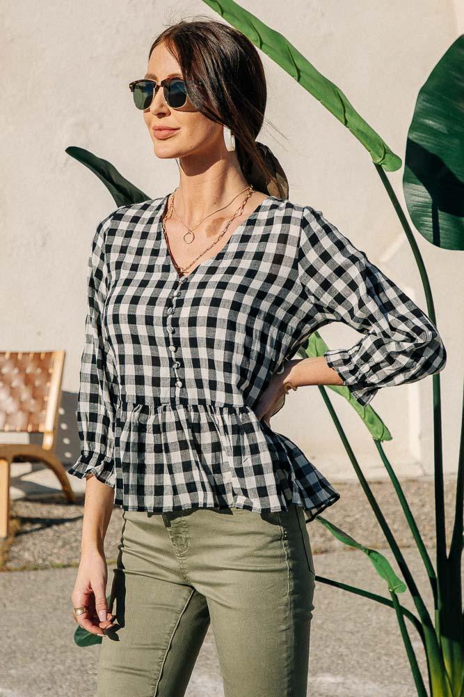 Gingham Peplum Top