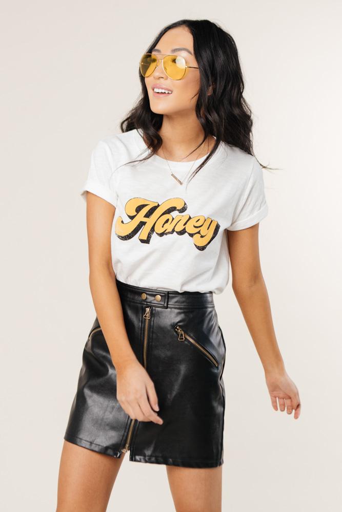 Edge up any outfit with out Harvey Vegan Leather Skirt. This skirt features a full front zip closure, snap button detailing, and front pockets.