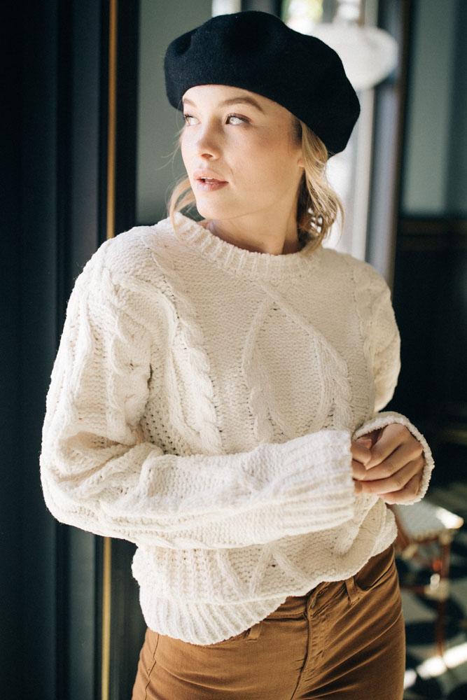 The Holland Cable knit sweater features thick knit material that makes this one you just wont want to take off. Try pairing with denim or soft bottoms, whatever you pick you will look and feel great!