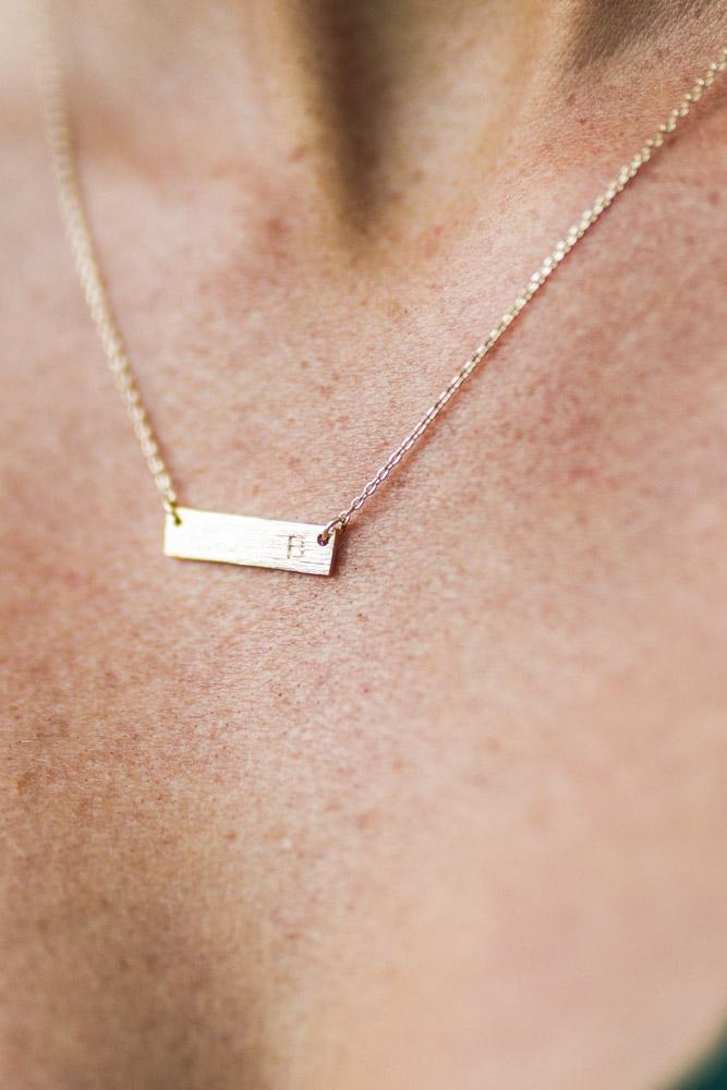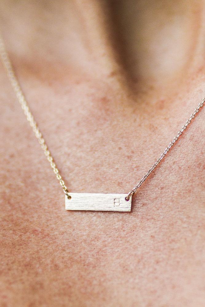 This subtle bar necklace is the perfect addition to any outfit. Choose your initial or keep the initial of a loved one close.