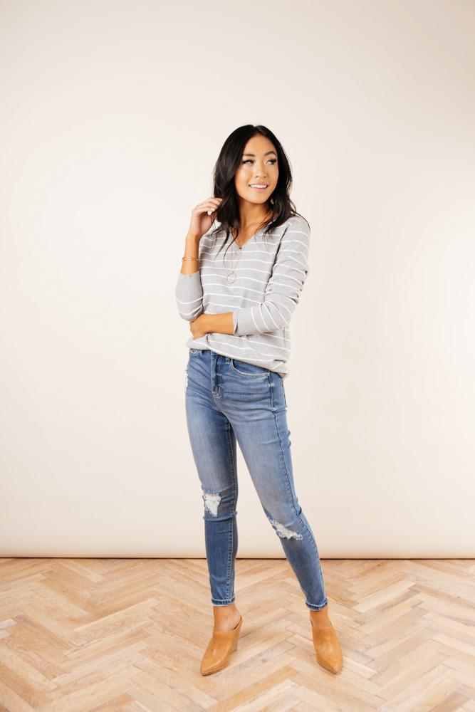Jordyn Striped Sweater in Grey - FINAL SALE