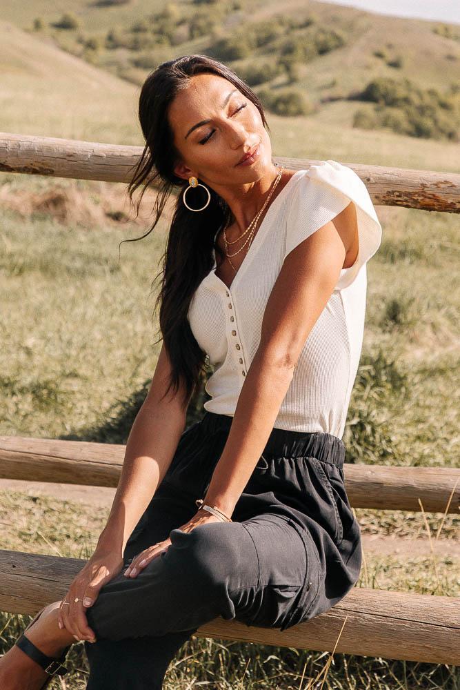 **Our online merchandise team measures each size by hand. For more specific information on the product, please feel free to live chat with a stylist.