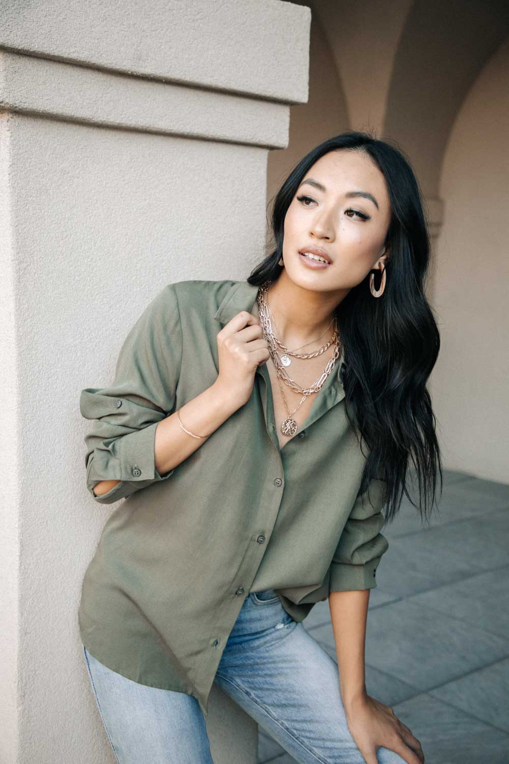 **Our online merchandise team measures each size by hand. For more specific information on the product, please feel free to live chat with a stylist.
