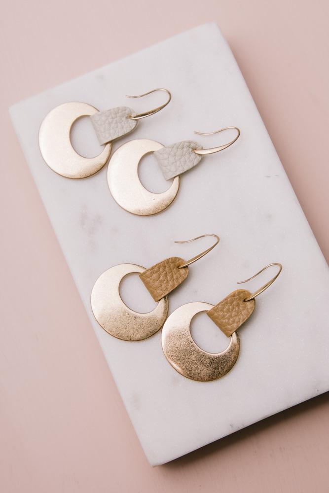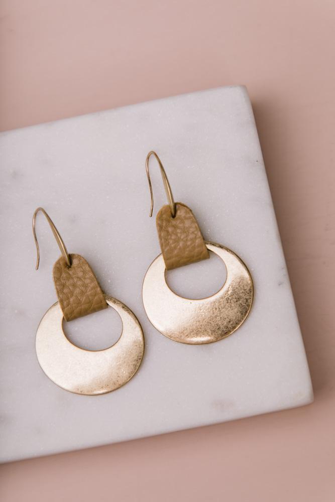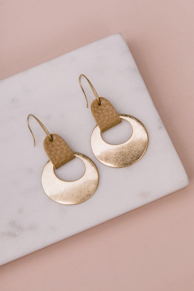Manu Bay Leather + Metal Earrings in Brown