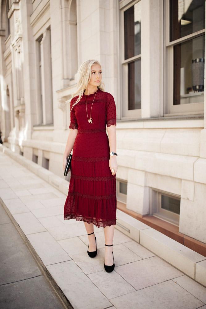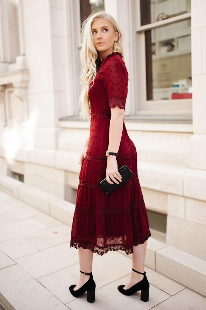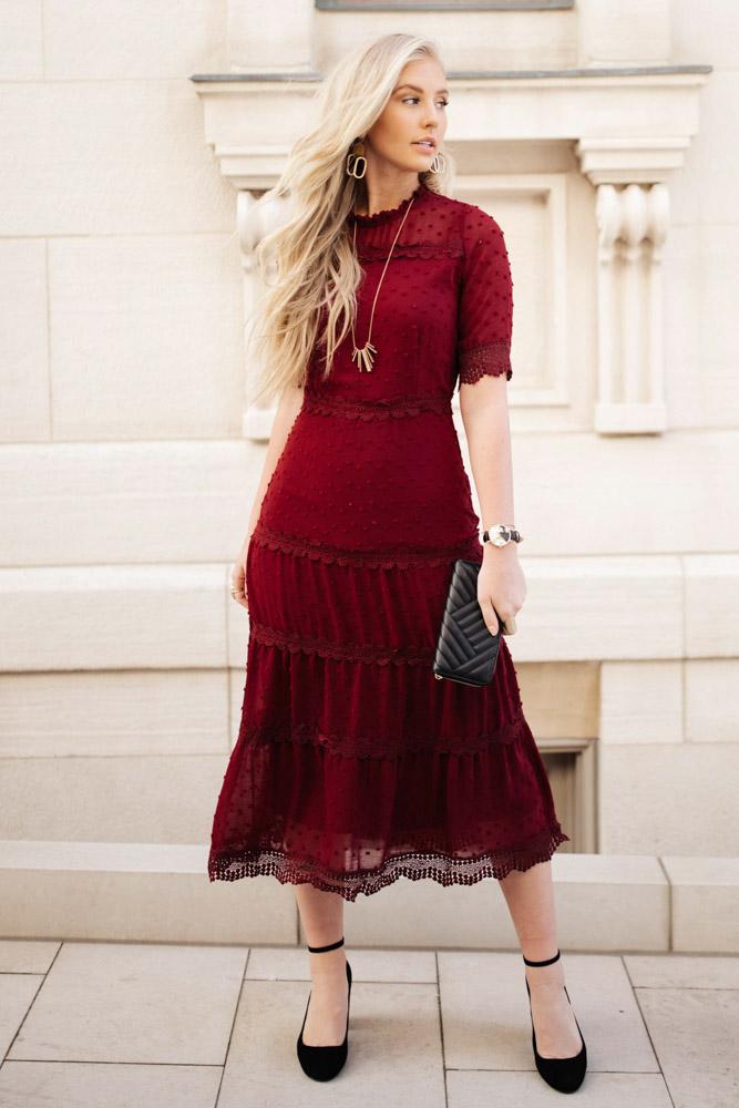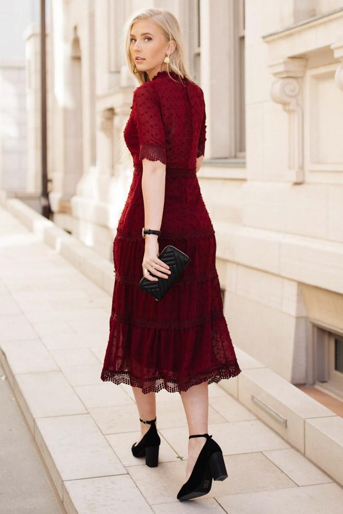 • Load image into Gallery viewer, Maria Dot Dress in Wine