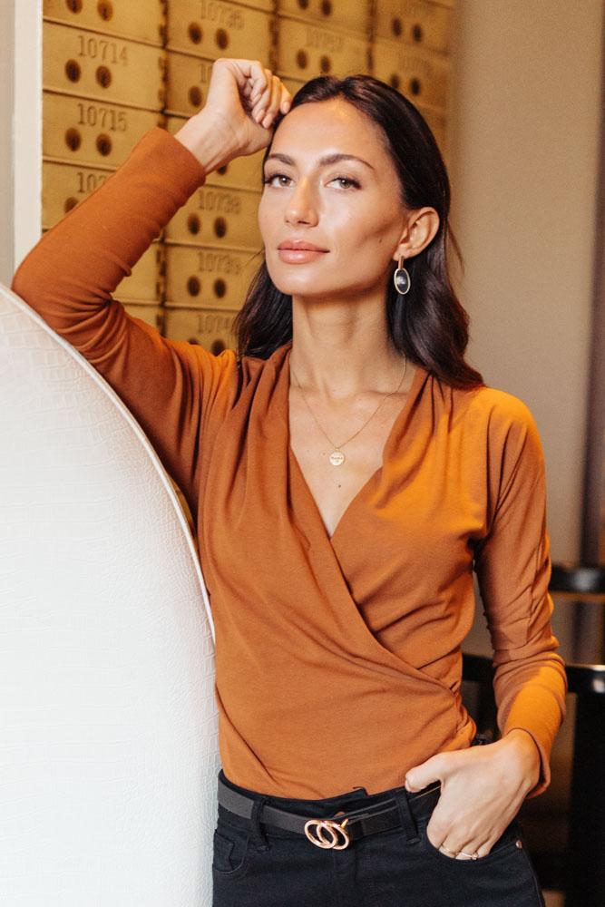 **Our online merchandise team measures each size by hand. For more specific information on the product, please feel free to live chat with a stylist.