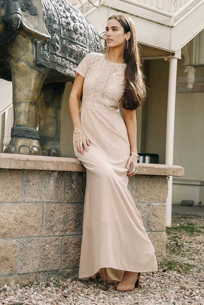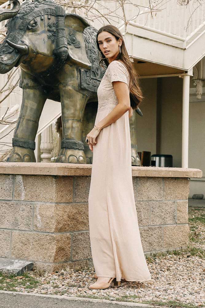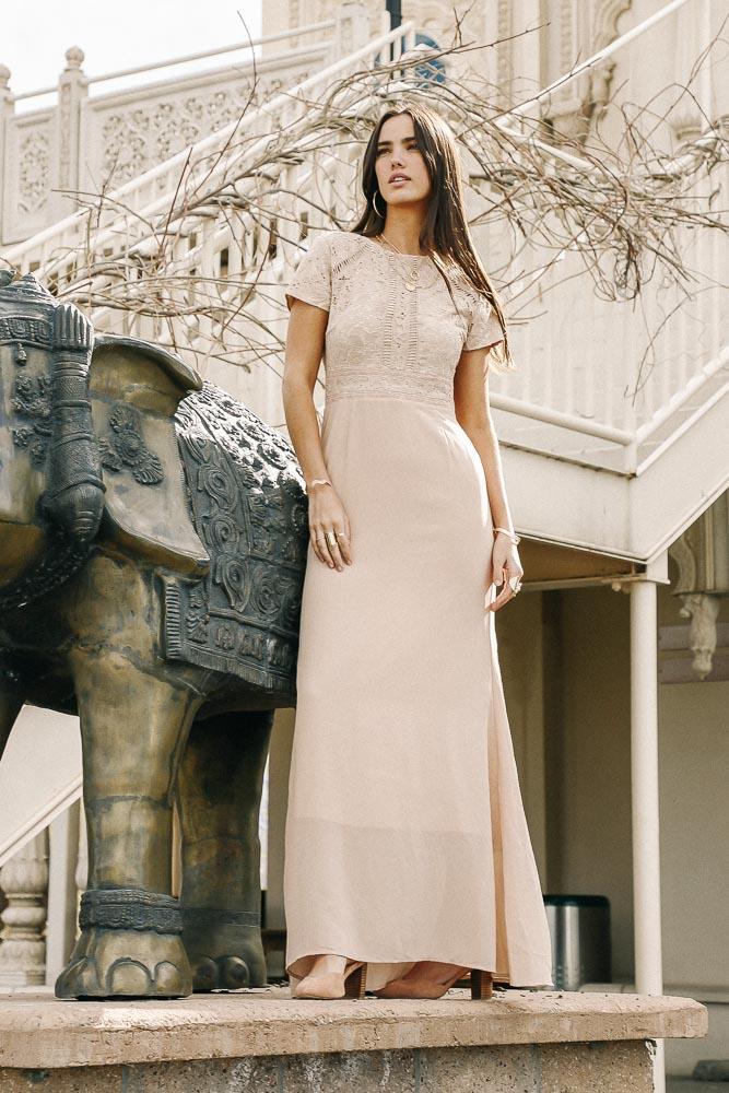 Myla Lace Maxi Dress in Taupe