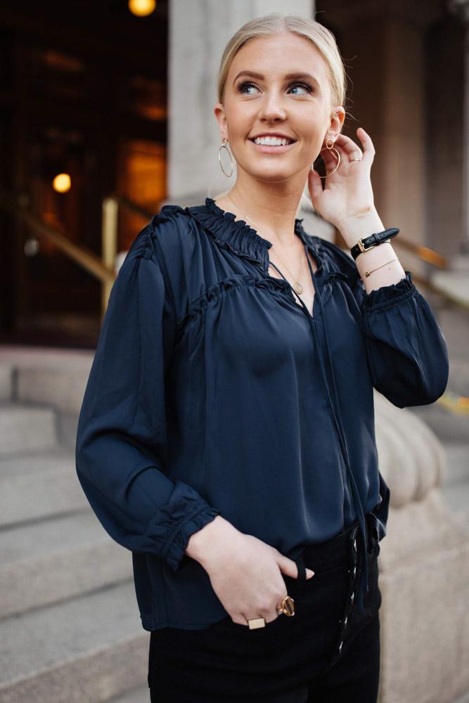 **Our online merchandise team measures each size by hand. For more specific information on the product, please feel free to live chat with a stylist.