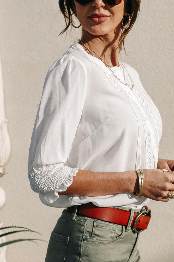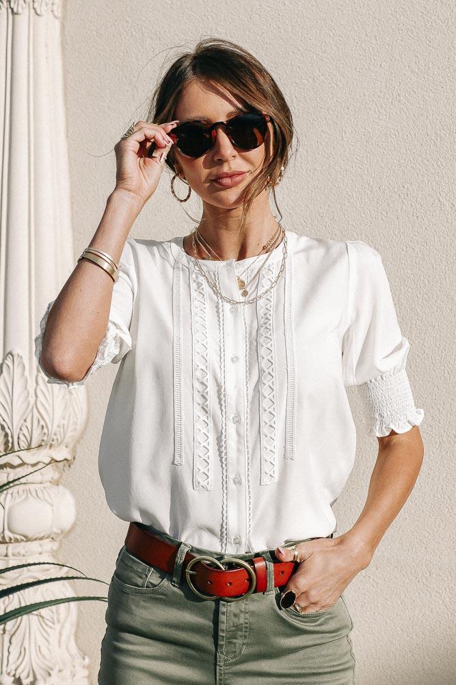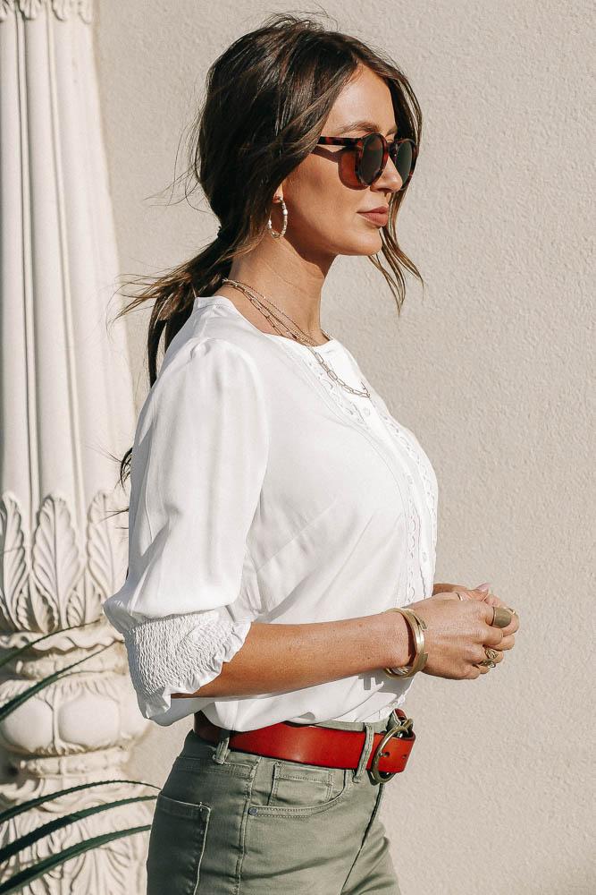 **Our online merchandise team measures each size by hand. For more specific information on the product, please feel free to live chat with a stylist.