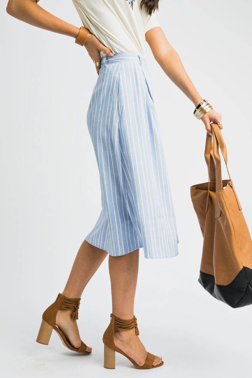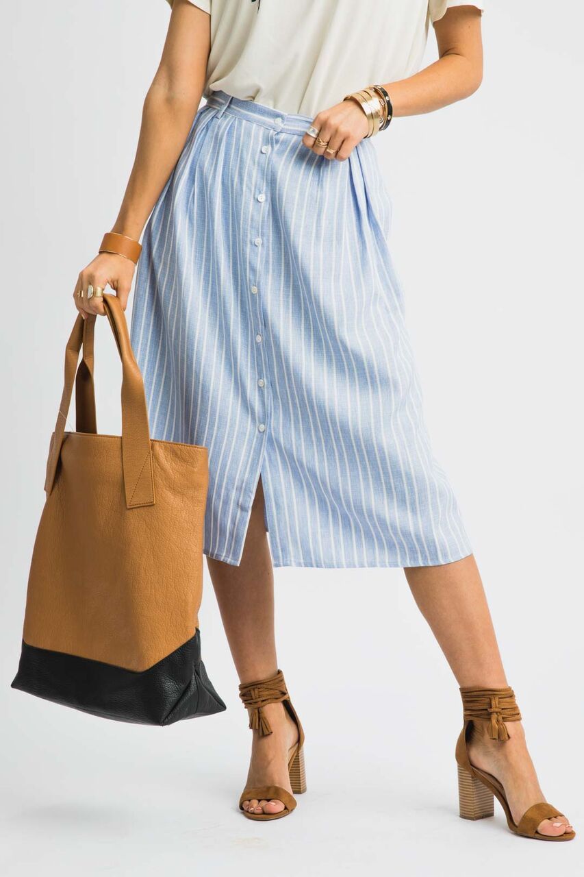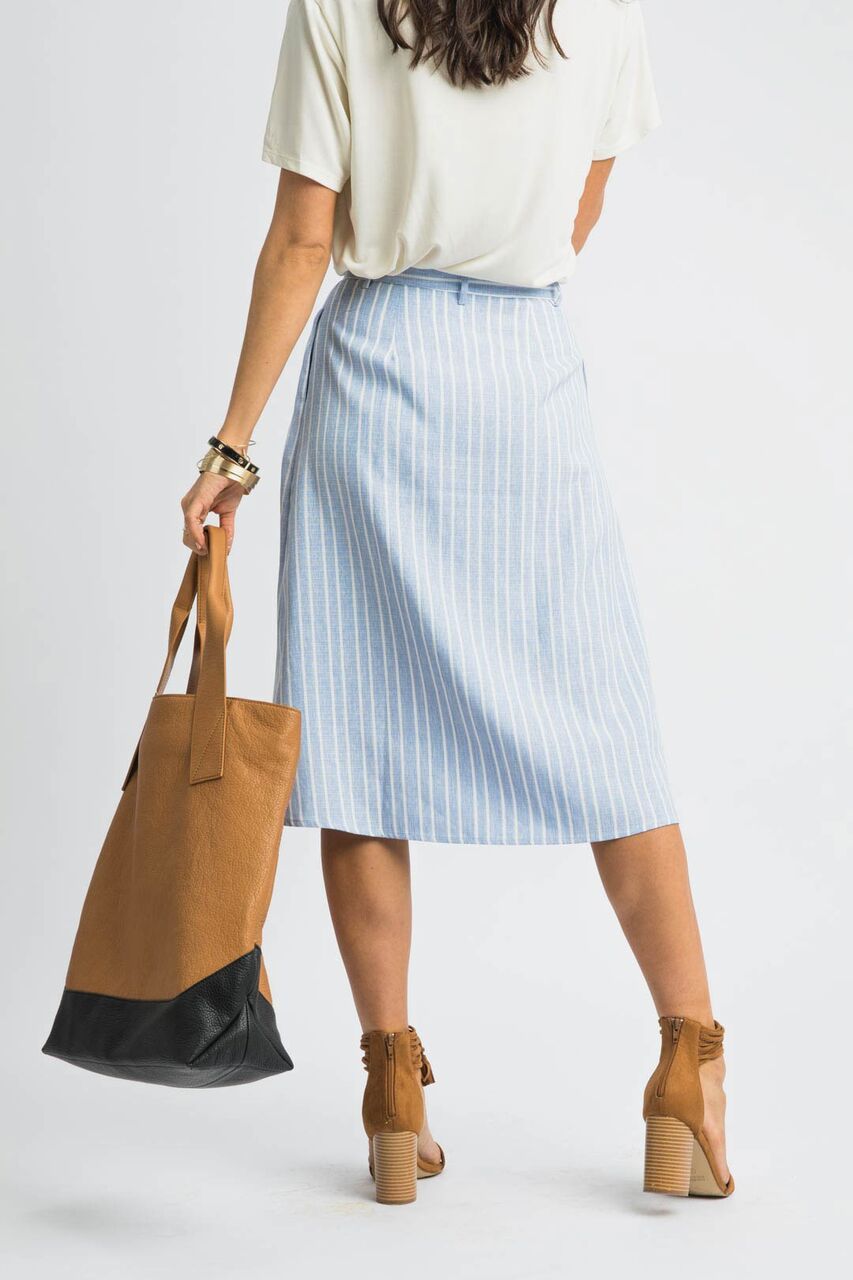 • Load image into Gallery viewer, Poppy Pinstripe Blue Midi Skirt