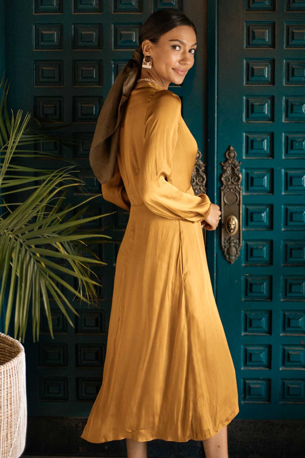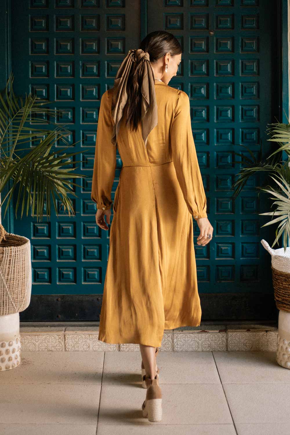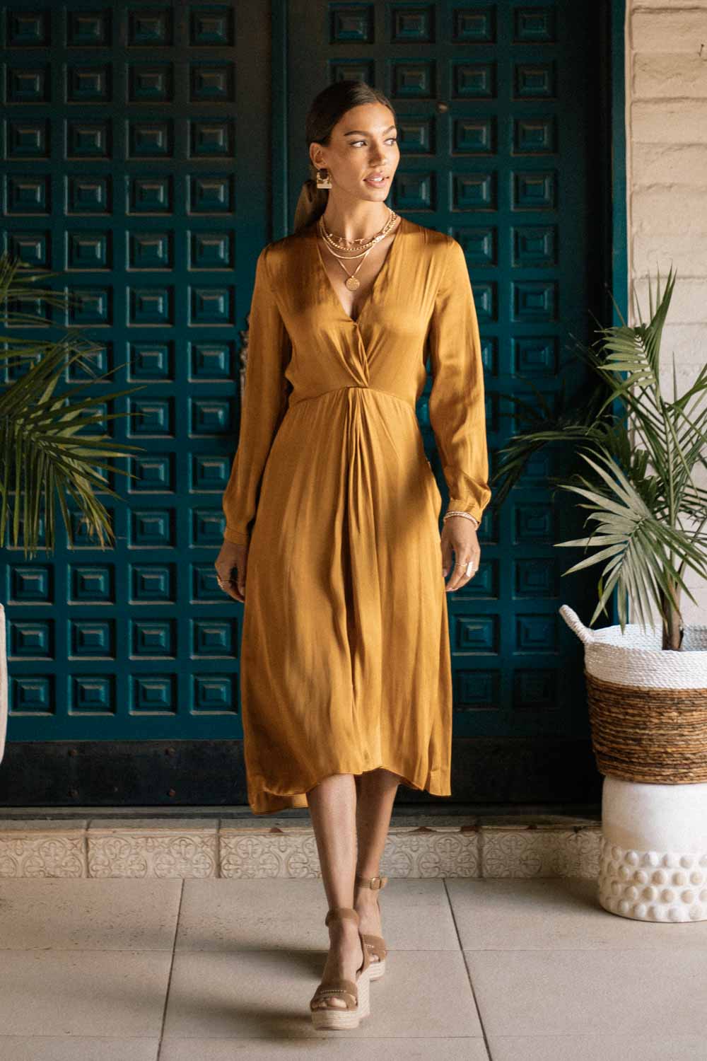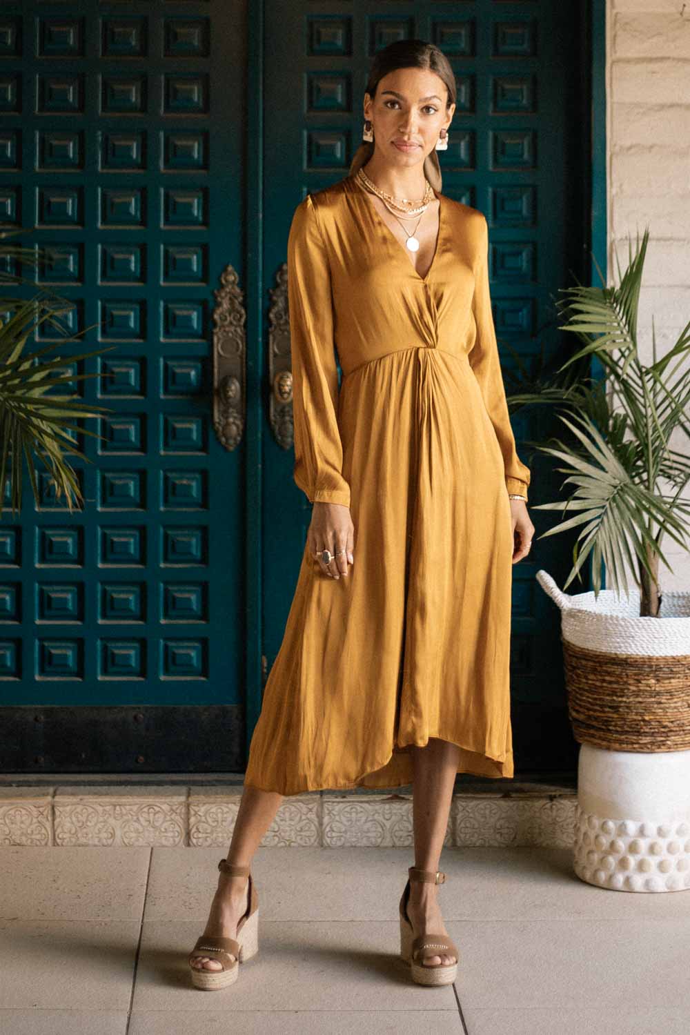 • Load image into Gallery viewer, Serene Twist Front Dress in Mustard
