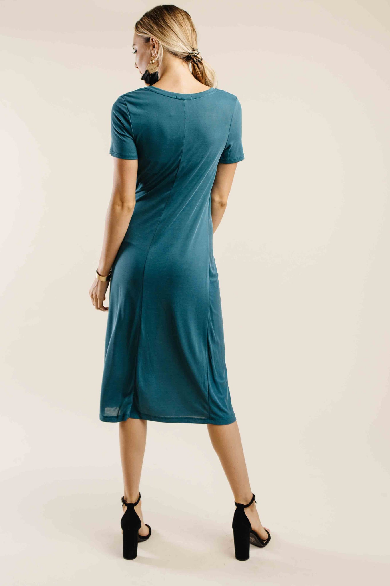 Staycation Side Knot Midi Dress in Teal
