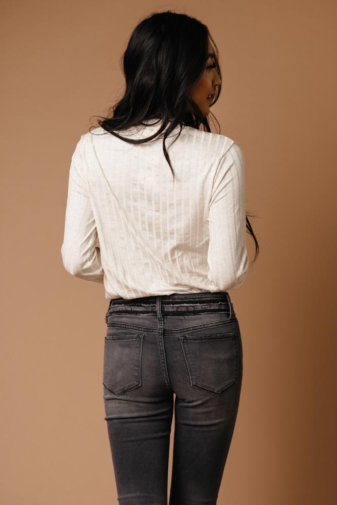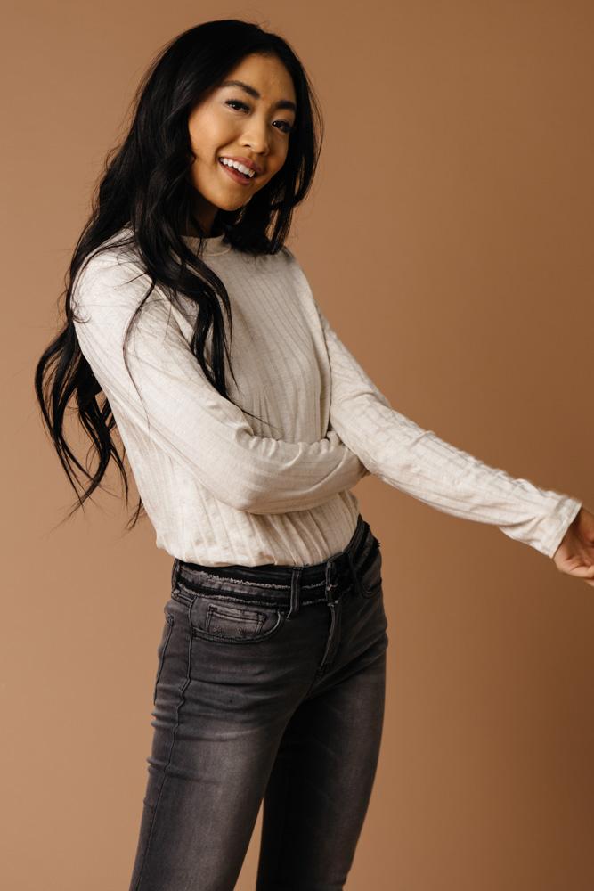The Teigen Long Sleeve has a ribbed knit fabric that is comfier than ever. It's a great piece for layering or pairing with denim. Don't forget to find our other color! You'll definitely want both to complete your wardrobe.