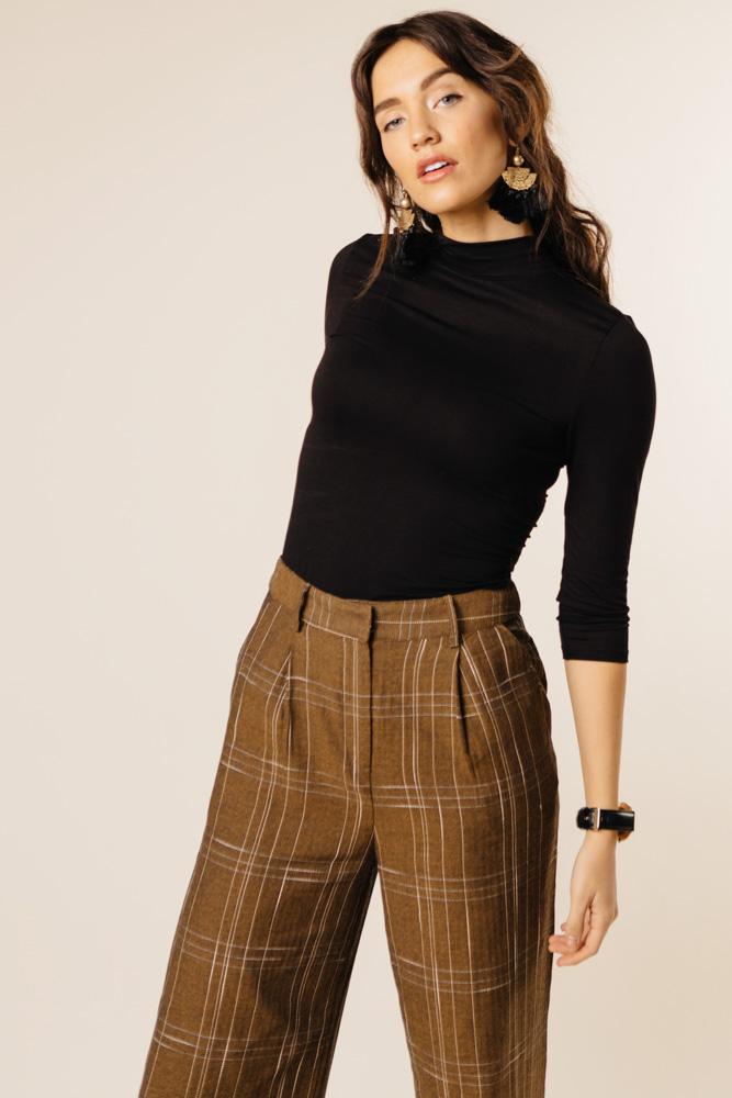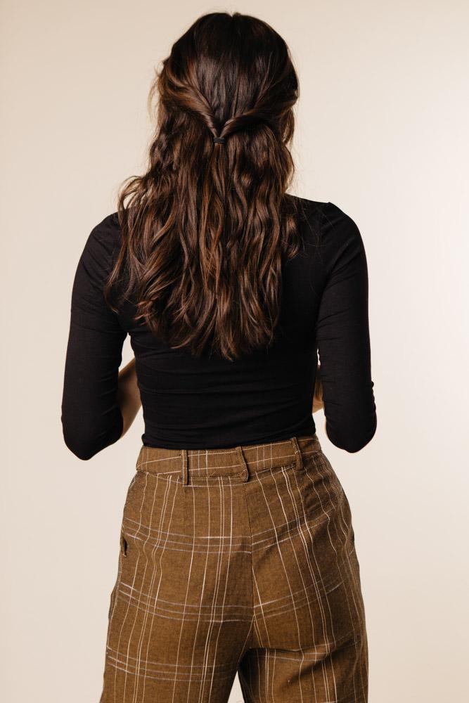This Chic Mock Neck Top will have you feeling fashion week chic! This top features a form fitting bodice, three quarter length sleeves, and the perfect mock neck. Try pairing it with palazzo pants, jeans, or even a cool pair of slacks!