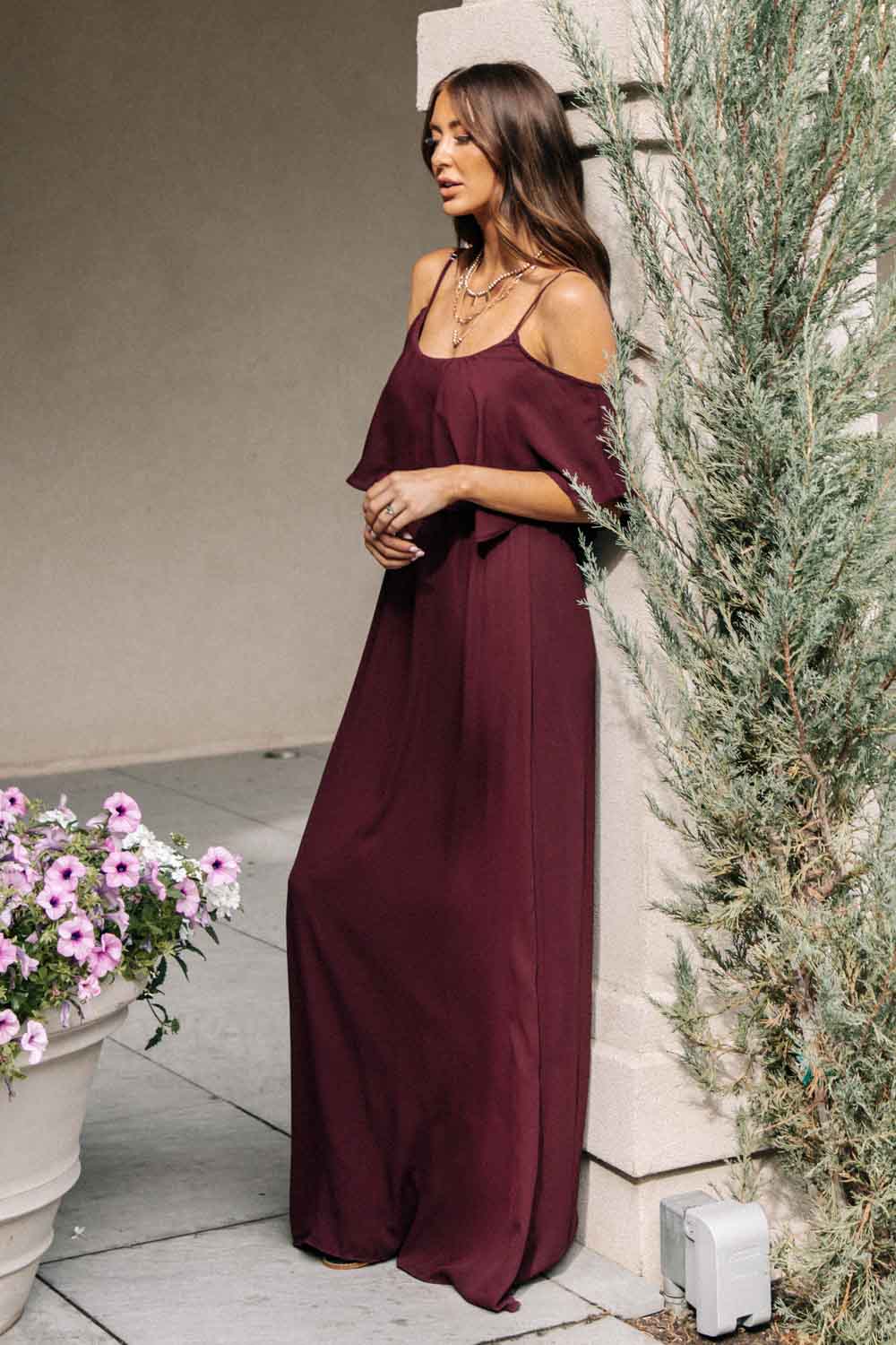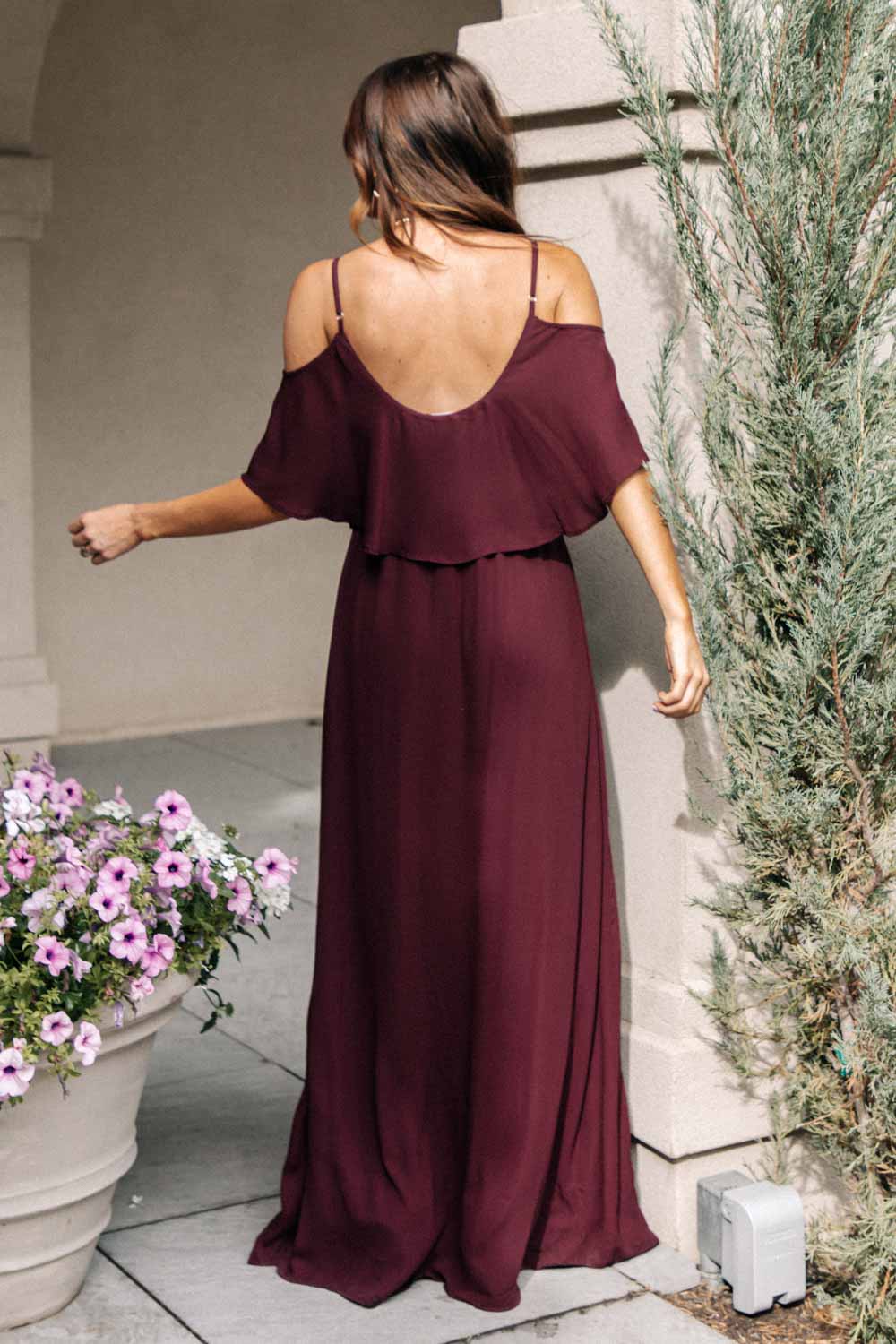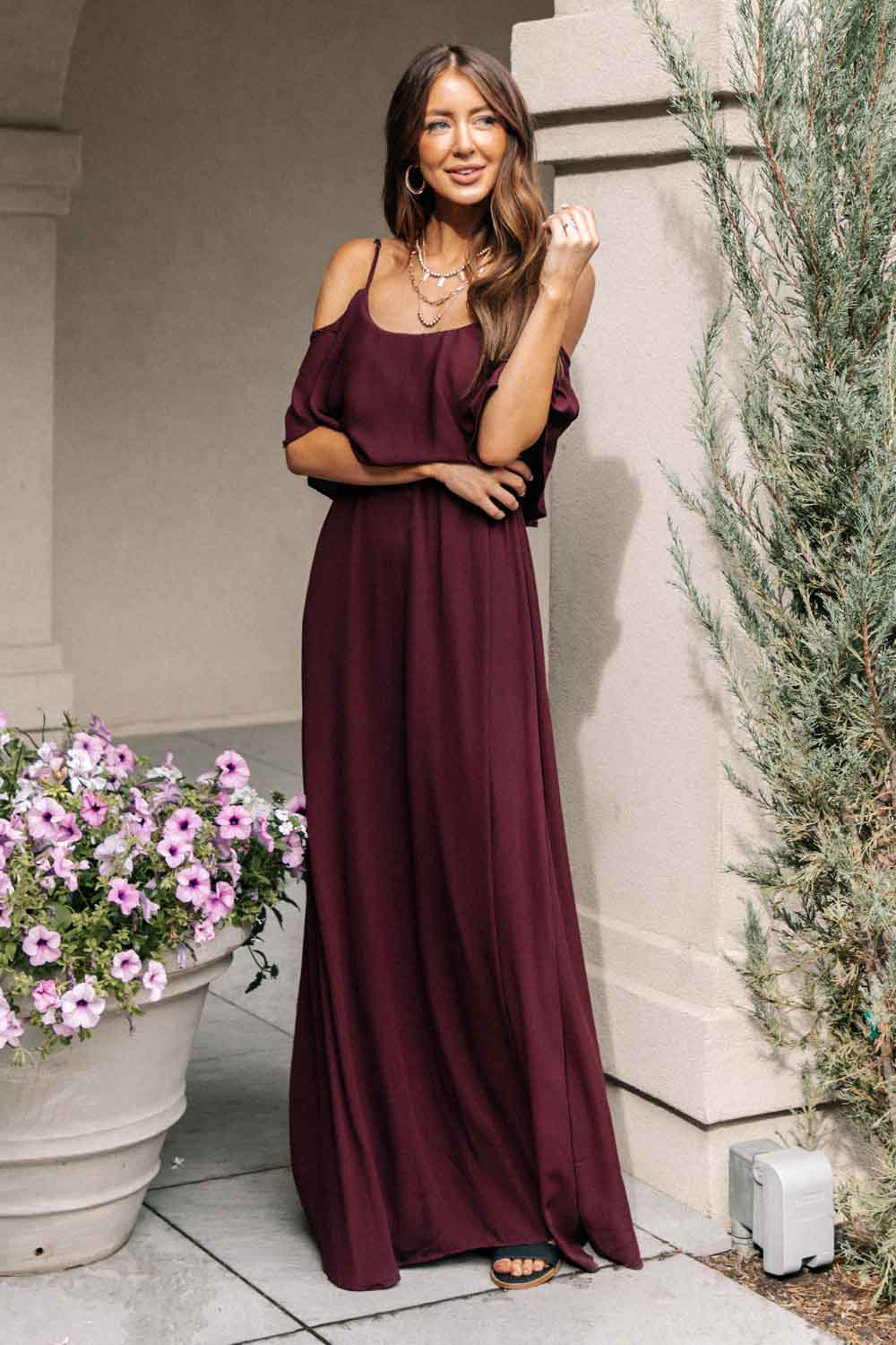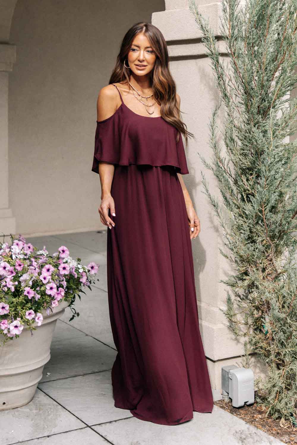 Toni Off the Shoulder Maxi Dress in Burgundy